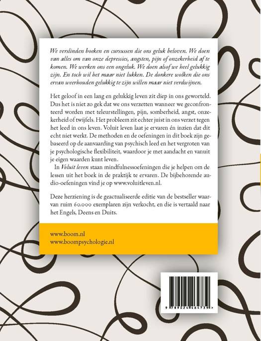 In hun boek stellen Ernst Bohlmeijer en Monique Hulsbergen drie pijlers centraal: 1) laat het sprookje van een lang en gelukkig leven (zonder pijn) varen en geef je verzet tegen psychisch leed op; 2) leer op te merken wat er in je omgaat en je te verbinden met wat er nu is in je leven; en 3) probeer te ontdekken wat je echt belangrijk vindt in je leven en maak dat de basis van je handelen. Als je jouw waarden kent, kun je de balans vinden tussen wat je verstand en je hart je ingeven en kun je beter omgaan met de wisselvalligheden in het leven. Je gaat dan voluit leven!