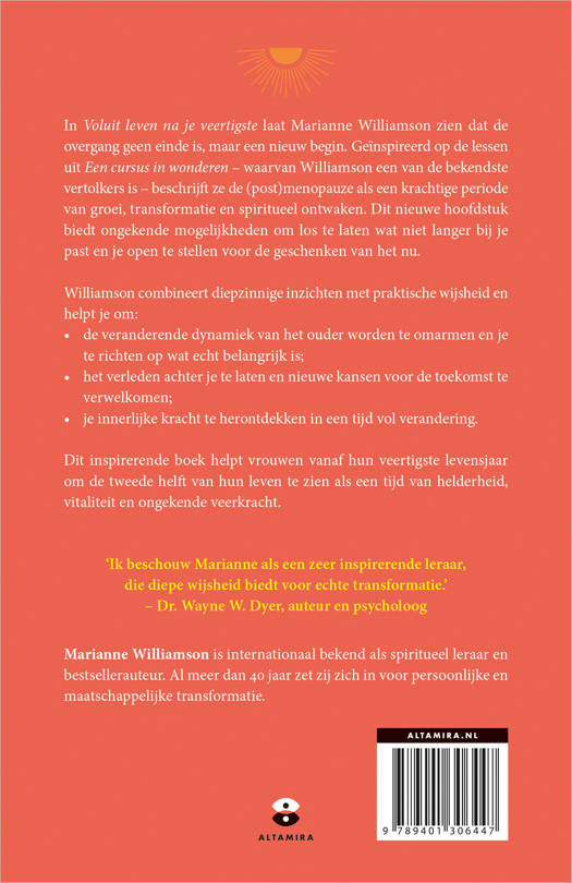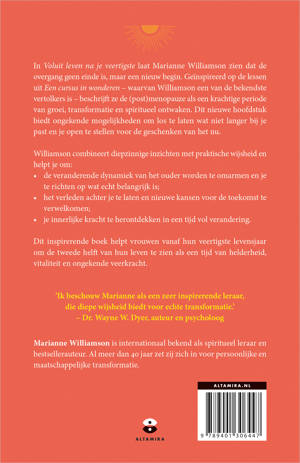 In Voluit leven na je veertigste laat Marianne Williamson zien dat de overgang geen einde is, maar een nieuw begin. Geïnspireerd op de lessen uit Een cursus in wonderen – waarvan Williamson een van de bekendste vertolkers is – beschrijft ze de (post)menopauze als een krachtige periode van groei, transformatie en spiritueel ontwaken. Dit nieuwe hoofdstuk biedt ongekende mogelijkheden om los te laten wat niet langer bij je past en je open te stellen voor de geschenken van het nu.