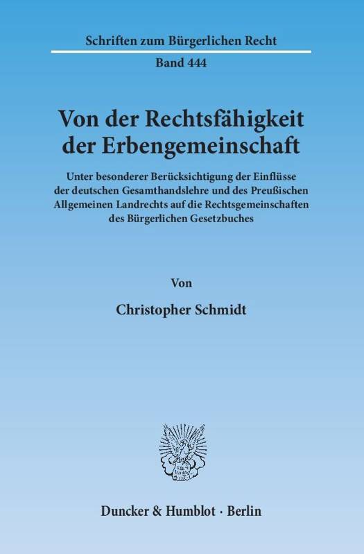 Unter Besonderer Berucksichtigung Der Einflusse Der Deutschen Gesamthandslehre Und Des Preussischen Allgemeinen Landrechts Auf Die Rechtsgemeinschaften Des Burgerlichen Gesetzbuches