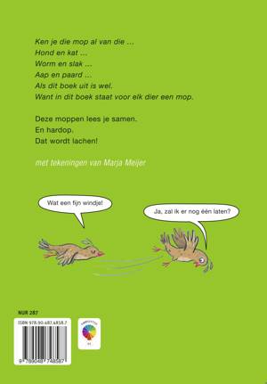 De leukste dierenmoppen vind je in dit toneellezen moppenboek op AVI E3. Ken je die mop van de muis en de olifant? Of van die wormen? Van vieze moppen tot lastige raadsels en van grappige dialogen tot leuke strips.