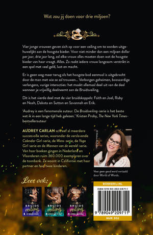‘Audrey is een fenomenale auteur, een van mijn favoriete personen en als ik je zeg dat de Bruidsveiling-serie het beste is wat ik in een lange tijd gelezen heb, dan is dat de waarheid!’The New York Times-bestsellerauteur Kristen Proby