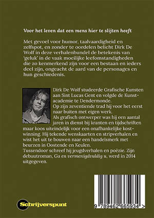 Met gevoel voor humor, taalvaardigheid en zelfspot, en zonder te oordelen belicht Dirk De Wolf in deze verhalenbundel de betekenis van ‘geluk’ in de vaak moeilijke leefomstandigheden die zo kenmerkend zijn voor een bestaan en ieders deel zijn, ongeacht de aard van de personages en hun geschiedenis.