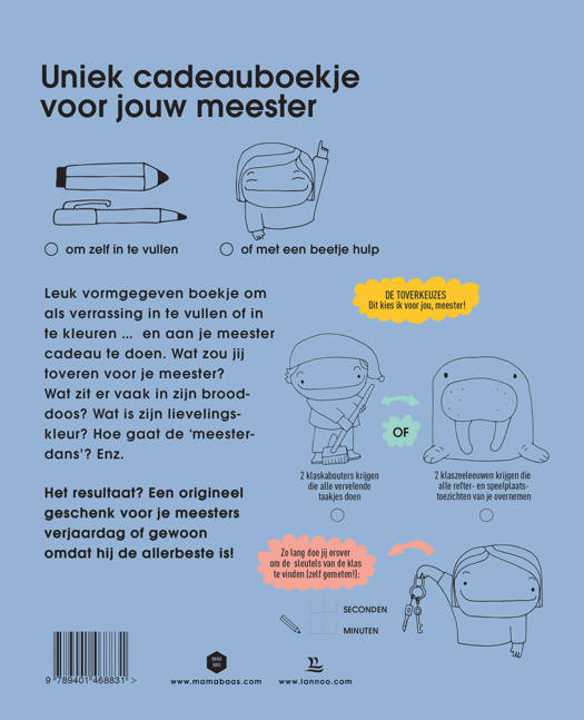 Leuk vormgegeven boekje om als verrassing in te vullen of in te kleuren ... en aan je meester cadeau te doen.