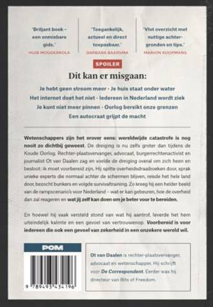 Wetenschappers zijn het erover eens: wereldwijde catastrofe is nog nooit zo dichtbij geweest; de dreiging is nu groter dan tijdens de Koude Oorlog. Rechter-plaatsvervanger, advocaat, burgerrechtenactivist en journalist Ot van Daalen zag en voelde het overal om zich heen, en besloot het beest in de bek te kijken. Hij spitte overheidsdocumenten door, sprak unieke experts die normaal achter de schermen blijven, reisde het hele land door, bezocht bunkers en volgde survivaltraining. Zo kreeg hij een helder beeld van de rampscenario's voor Nederland - wat er kan gebeuren, hoe de overheid dan zal reageren en wat jij zelf kan doen om je beter voor te bereiden.