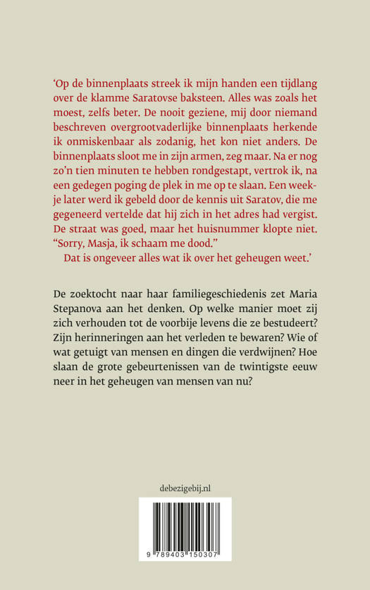 Wanneer Maria Stepanova op zoek gaat naar de geschiedenis van haar joods-Russische familie stuit ze op dokters, architecten, bibliothecarissen, accountants en ingenieurs die voorbestemd waren om slachtoffer te worden van vervolging en onderdrukking. Gek genoeg overleefde iedereen de verschrikkingen van de twintigste eeuw. Stepanova’s voorouders waren stuk voor stuk onopvallende figuren die in een roerige tijd probeerden een onspectaculair leven te leiden.