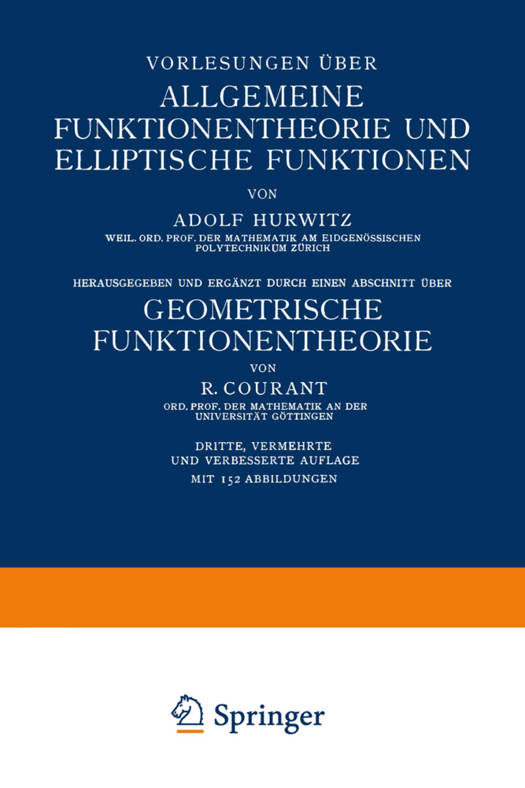 Vorlesungen Über Allgemeine Funktionentheorie Und Elliptische Funktionen