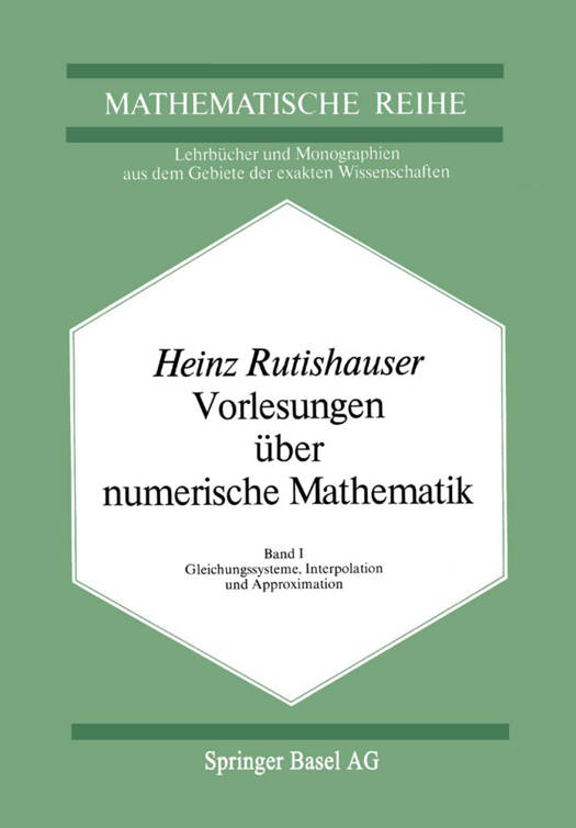 Heinz Rutishauser ist einer der Pioniere der modernen numerischen Mathe- matik. Urspriinglich als Funktionentheoretiker ausgebildet, trat er 1950 als Mitarbeiter in das kurz vorher gegriindete Institut fiir angewandte Mathematik an der Eidgenossischen Technischen Hochschule ein, wo sein aussergewohn- liches algorithmisches Talent bald zutage trat. Mit knapp gefassten Publikatio- nen fiihrte er Methoden und Fragestellungen in die numerische Mathematik ein, die sich in der Folge als grundlegend erwiesen haben. Die Theorie der Stabilitat bei der numerischen Losung von gewohnlichen Differentialg1eichun- gen, das economizing von Potenzreihen durch die Verwendung von Tsche- byscheff-Polynomen, der Quotienten-Differenzen-Algorithmus, das LR-Ver- fahren, die exakte Begriindung des Romberg-Algorithmus und viele andere Beitrage gehen auf Rutishauser zuriick. Er erkannte auch als erster, dass der Computer selbst zur Aufstellung von Rechenprogrammen beniitzt werden kann, und war massgeblich an der Entwicklung der Programmiersprache ALGOL beteiligt. In seinen letzten Lebensjahren befasste sich Rutishauser mit der Axiomatisierung des numerischen Rechnens und gab damit die yom theore- tischen Standpunkt aus wohl befriedigendste Theorie der Rundungsfehlerfort- pflanzung. Seine gesundheitsbedingte Reisescheu und wohl auch eine gewisse Introvertiertheit verhinderten, dass alle diese Leistungen ihrem Verdienst nach bekannt und gewiirdigt wurden. Nach Rutishausers Hinschied im Jahre 1970 beauftragte seine Witwe, Frau Margrit Rutishauser, die Unterzeichneten, seinen wissenschaftlichen Nachlass zu sichten. Es war uns sofort klar, dass Rutishausers Vorlesungen iiber numeri- sche Mathematik einen wichtigen Bestandteil seines Nachlasses bildeten.
