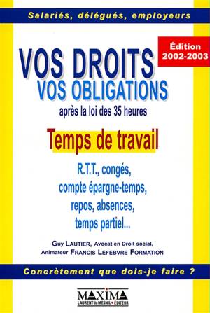 Recense et explique toutes les évolutions en droit du travail entraînées par les 35 heures. Traite du droit du travail en général et des régimes spéciaux en particulier, en fournissant de nombreux exemples.