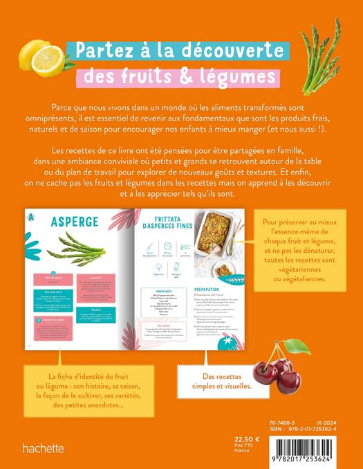 Les recettes de ce livre ont été pensées pour être partagées en famille, dans une ambiance conviviale où petits et grands se retrouvent autour de la table ou du plan de travail pour explorer de nouveaux goûts et textures. Et enfin, on ne cache pas les fruits et légumes dans les recettes mais on apprend à les découvrir et à les apprécier tels qu’ils sont.