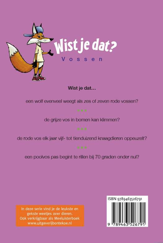 Wist je dat … een wolf evenveel weegt als zes of zeven rode vossen? de grijze vos in bomen kan klimmen? de rode vos elk jaar vijf- tot tienduizend knaagdieren oppeuzelt? een poolvos pas begint te rillen bij 70 graden onder nul?