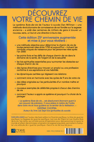 La méthode préconisée par Dan Millman s'appuie sur une ancienne sagesse de la Grèce antique qui voyait dans les nombres, les principes de toutes choses. Cette méthode se rapproche de la numérologie mais se révèle beaucoup plus riche d'enseignements, plus claire et plus précise. Notre date de naissance détermine certaines dispositions de notre « chemin de vie », comme nos prédispositions, nos talents, nos tendances et nous révélera les principaux obstacles et défis qu'il nous faudra franchir pour réaliser notre plein potentiel. Importante mise à jour incluant les dates d'anniversaires des années 2000 !