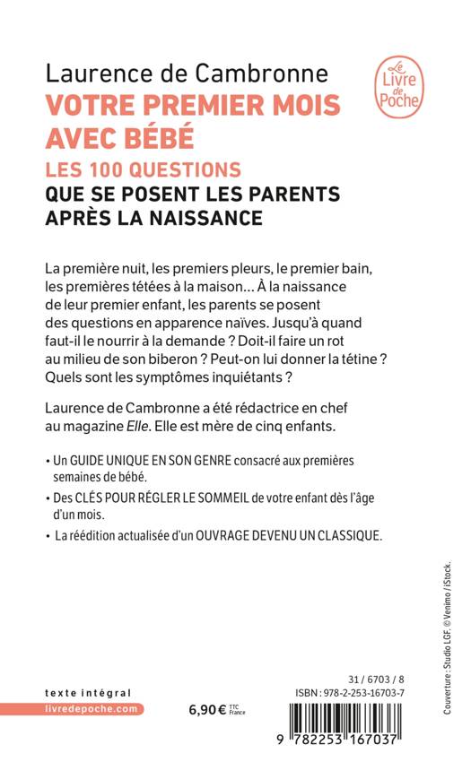 La première nuit, les premiers pleurs, le premier bain, les premières tétées à la maison… Lorsqu’il s’agit de votre premier enfant, vous vous posez mille questions, qui vous semblent parfois bêtes ou naïves. Doit-il faire un rot au milieu de son biberon ? Jusqu’à quel âge le nourrir à la demande ? Que penser de la tétine ? Quels sont les symptômes inquiétants et les fausses angoisses ? Comment le faire dormir une petite nuit de cinq ou six heures d’affilée dès l’âge d’un mois ? Ce livre, qui apporte des réponses à toutes vos interrogations, est la réédition actualisée d’un ouvrage paru pour la première fois en 1998. Il est devenu un classique.