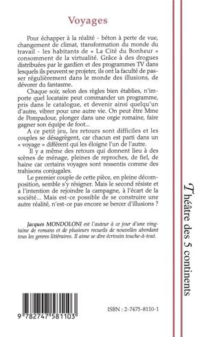 Les habitants de "La Cité du Bonheur" veulent échapper à leur triste réalité et consomment de la virtualité, par le biais de drogues et de programmes TV dans lesquels ils se projettent. Chaque soir, n'importe quel locataire peut commander un programme et devenir quelqu'un d'autre. Mais, les retours sont difficiles et les couples se désagrègent car chacun est parti dans un "voyage" différent de l'autre. Le premier couple de la pièce semble se résigner, mais le second résiste et décide de s'installer à la campagne, à l'écart de la société. Mais peut-on se construire une autre réalité, n'est-ce pas encore se bercer d'illusions ?
