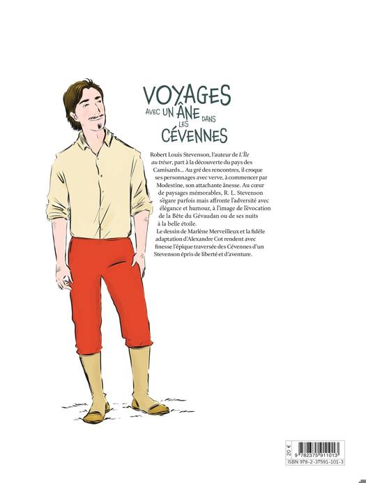 Robert Louis Stevenson, l’auteur de L’Île au trésor, part à la découverte du pays des Camisards… Au gré des rencontres, il croque ses personnages avec verve, à commencer par Modestine, son attachante ânesse. Au cœur de paysages mémorables, R. L. Stevenson s’égare parfois mais affronte l’adversité avec élégance et humour, à l’image de l’évocation de la Bête du Gévaudan ou de ses nuits à la belle étoile. Le dessin de Marlène Merveilleux et la fidèle adaptation d’Alexandre Cot rendent avec finesse l’épique traversée des Cévennes d’un Stevenson épris de liberté et d’aventure.