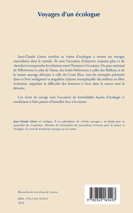 Jean-Claude Génot enrichit sa vision d'écologue à travers ses voyages naturalistes dans le monde. Ils sont l'occasion d'observer toujours plus et de chercher à comprendre les relations entre l'homme et la nature. Du parc national de Yellowstone à celui de Suisse, des forêts biélorusses à celles des Balkans et de la nature sauvage africaine à celle du Costa Rica, tous les exemples présentés dans ce livre soulignent la singulière richesse irremplaçable des milieux en libre évolution, rappelant la difficulté des hommes à vivre dans la nature sans la détruire. Ces récits de voyage sont l'occasion de formidables leçons d'écologie et conduisent à faire preuve d'humilité.