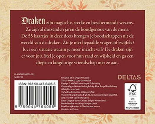 Gebruik deze doos met 55 kaartjes om beroep te doen op de oneindige wijsheid van de draken. Deze magische, sterke en beschermende wezens zijn al duizenden jaren de bondgenoot van de mens en zijn bereid je te helpen. Zit je met bepaalde vragen of twijfels? Is er een situatie waarin je meer inzicht wil? Stel je open voor hun raad en ga een diepe en langdurige vriendschap met ze aan.