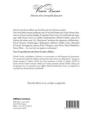 Voici le récit de la plus incroyable arnaque perpétrée par le "plus grand faussaire en écritures jamais épinglé", le sieur Denis Vrain Lucas qui fut condamné pour avoir vendu au mathématicien Michel Chasles - celui de la relation du même nom - plus de 27 000 fausses lettres de célébrités allant de l'Antiquité jusqu'à la fin du XVIIe siècle. Cette stupéfiante affaire qui se déroule sous le Second Empire, n'aurait pu se développer sans l'extraordinaire engouement suscité au XIXe siècle par les autographes de personnages illustres.