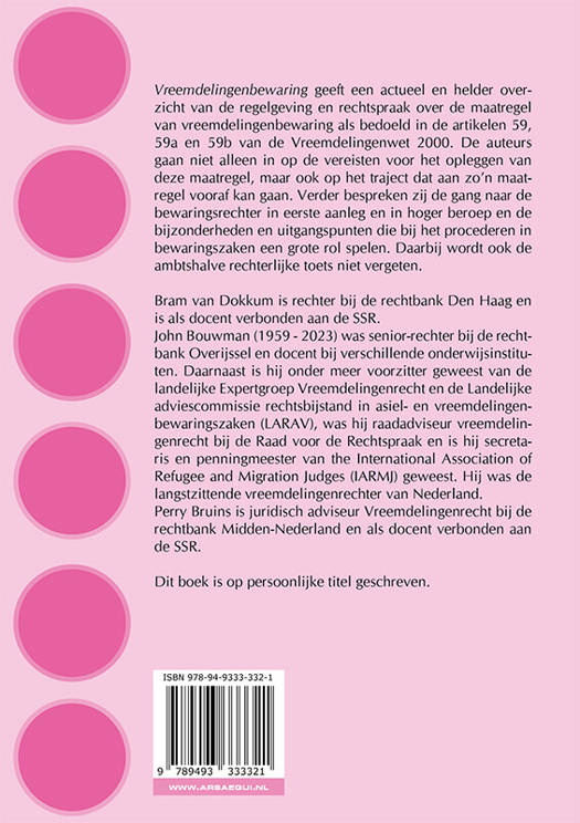 Bram van Dokkum is rechter bij de rechtbank Den Haag en is als docent verbonden aan de SSR. John Bouwman (1959 - 2023) was senior-rechter bij de rechtbank Overijssel en docent bij verschillende onderwijsinstituten. Daarnaast is hij onder meer voorzitter geweest van de landelijke Expertgroep Vreemdelingenrecht en de Landelijke adviescommissie rechtsbijstand in asiel- en vreemdelingenbewaringszaken (LARAV), was hij raadadviseur vreemdelingenrecht bij de Raad voor de Rechtspraak en is hij secretaris en penningmeester van the International Association of Refugee and Migration Judges (IARMJ) geweest. Hij was de langstzittende vreemdelingenrechter van Nederland. Perry Bruins is juridisch adviseur Vreemdelingenrecht bij de rechtbank Midden-Nederland en als docent verbonden aan de SSR.