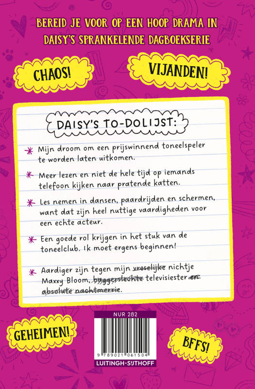 Jenny Valentine (bekend van o.a. Wij, ervoor en erna, Joy en Op zoek naar Violet Park) schreef met Daisy's doodgewone dagboek een sprankelende jeugdserie over een meisje met grote dromen en de valkuilen van beroemd zijn. In dit eerste deel, Vriend of vijand?, komen herkenbare thema's zoals vriendschap, identiteit en rivaliteit tot leven door Jenny's dagboekstijl en de eigentijdse zwart-witillustraties van Hannah McCaffery. Daisy Brouwer wil de hoofdrol in het schooltoneelstuk krijgen. Iedereen weet dat ze talent heeft voor acteren. Maar haar klasgenoten weten niet dat ze een beroemde nicht heeft - met filmstervrienden, een miljoen volgers en een luxeleven. En dat houdt Daisy graag zo. Dan vertellen haar ouders dat haar nichtje een tijdje komt logeren, en Daisy vreest dat dit haar toneelambities flink in de weg zal zitten. Maar haar nichtje zit vol verrassingen...