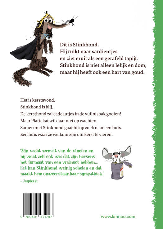 Het is kerstavond. Stinkhond is blij. De kersthond zal cadeautjes in de vuilnisbak gooien! Maar Plattekat wil daar niet op wachten. Samen met Stinkhond gaat hij op zoek naar een huis. Een huis waar ze welkom zijn om kerst te vieren!