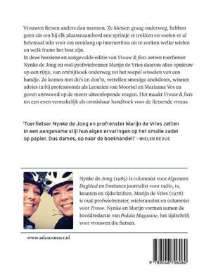 Toerfietser Nynke de Jong en profwielrenner Marijn de Vries zetten alles nog eens op een rijtje, van ontbijtkoek onderweg tot het soepel wisselen van een bandje. Vrouwen fietsen namelijk anders dan mannen. Ze kletsen graag onderweg, hebben geen zin om bij elk plaatsnaambord onderweg een sprintje te trekken en voelen er al helemaal niks voor om urenlang op internetfora uit te zoeken welke wielen en welk frame het best zijn. Ze komen met do’s en don’ts, vertellen smeuïge anekdotes, winnen advies in bij professionals als Leontien van Moorsel en Marianne Vos en geven antwoord op de meest uiteenlopende vragen.