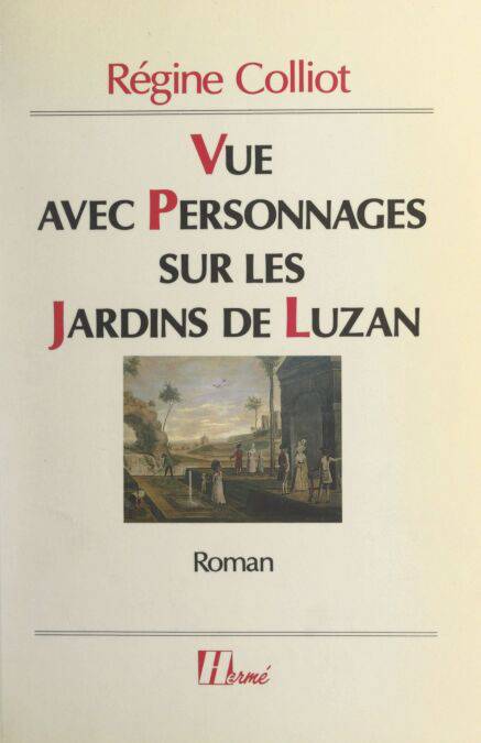 « Luigi Ferrari revint séjourner au château de Luzan à la fin août 1787 : il y resta environ cinq mois, le temps de peindre la fameuse "Vue avec personnages", qui orne le mur de mon couloir à Toulouse. Je regardais la Vue avec personnages naître sous son pinceau appliqué. Il avait commencé par le décor des jardins, les grands peupliers, le morceau de ciel traversé par les hérons, les lointains où se profilaient le village autour du clocher de l’église, le colombier, les ruines du donjon, le lacis des chemins et les énigmatiques promeneurs qui, assis en ligne sur un talus, tournaient le visage vers nous. Luigi n’était pas un exécutant parfait, mais il avait le sens du mystère. Déjà, s’esquissaient les deux arches de pierre menant aux parcs cruels, en deçà de la cascade de la Volte, dont les flots avaient roulé le corps de Giorgio. Maintenant, Luigi dessinait d’abord au crayon, au premier plan, les grands personnages : il me les nomma successivement. Je vis avec émotion ma silhouette naître, et se fixer à côté de celle d’Agathe, la comtesse et le comte Robert s’entretenir avec Desmarches. — Il manque quelqu’un, fis-je. — Qui donc ? — Le chevalier de La Brillane. — Je sais bien ; mais Madame la comtesse m’a interdit de le présenter sur la toile. »