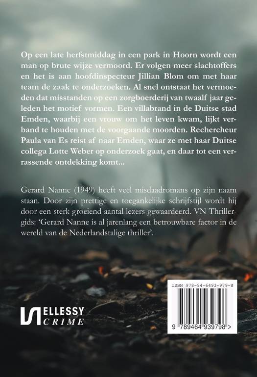 Op een late herfstmiddag in een park in Hoorn wordt een man op brute wijze vermoord. Er volgen meer slachtoffers en het is aan hoofdinspecteur Jillian Blom om met haar team de zaak te onderzoeken. Al snel ontstaat het vermoeden dat misstanden op een zorgboerderij van twaalf jaar geleden het motief vormen. Een villabrand in de Duitse stad Emden, waarbij een vrouw om het leven kwam, lijkt verband te houden met de voorgaande moorden. Rechercheur Paula van Es reist af naar Emden, waar ze met haar Duitse collega Lotte Weber op onderzoek gaat, en daar tot een verrassende ontdekking komt...