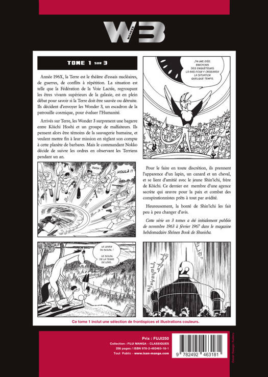 Année 196X, la Terre est le théâtre d'essais nucléaires, de guerres, de conflits à répétition. La situation est telle que la Fédération de la Voie Lactée, regroupant les êtres vivants supérieurs de la galaxie, est en plein débat pour savoir si la Terre doit être sauvée ou détruite. Ils décident d'envoyer les Wonder 3, un escadron de la Patrouille Cosmique pour évaluer l'Humanité. Prenant l'apparence d'un lapin, d'un canard et d'un cheval, les enquêteurs extra-terrestres se lient d'amitié avec le jeune Shinichi et avec son grand frère, Kôichi. Ce dernier est membre d'une agence secrète qui oeuvre pour la paix et combat les conspirationnistes prêts à tout par avidité. Les Wonder 3 sont choqués par le comportement des Hommes et confortés dans leur idée de détruire la planète. Heureusement, la bonté de Shinichi les fait peu à peu changer d'avis. Cela sera-t-il suffisant ? En bonus, retrouvez des frontispices et des images couleurs