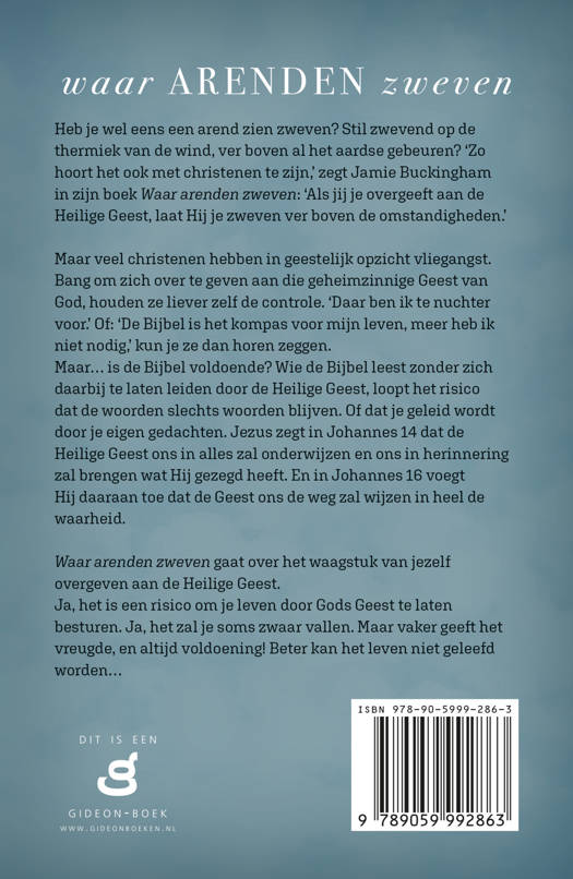 Waar arenden zweven gaat over het waagstuk van jezelf overgeven aan de Heilige Geest. Ja, het is een risico om je leven door Gods Geest te laten besturen. Ja, het zal je soms zwaar vallen. Maar vaker geeft het vreugde, en altijd voldoening! Beter kan het leven niet geleefd worden…