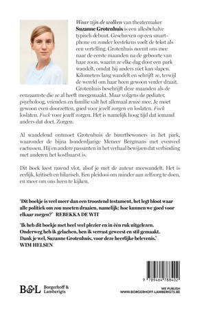 Suzanne Grotenhuis is theatermaker en -actrice bij De Nwe Tijd. Dit is haar eerste roman, maar het boek is allesbehalve een typisch debuut. Geschreven op een smartphone en zonder leestekens voelt de tekst als een monoloog/vertelling. Grotenhuis neemt ons mee naar de eerste maanden na de geboorte van haar zoon, waarin ze elke dag door het park wandelt, omdat hij anders niet kan slapen. Kilometers lang wandelt ze en schrijft ze, terwijl de wereld om haar heen gewoon verder draait. Grotenhuis beschrijft deze maanden als een van de eenzaamste die ze al heeft meegemaakt. Maar volgens de psycholoog, pediater, vrienden en familie valt dat allemaal reuze mee. Want alles komt altijd goed, je moet gewoon even doorzetten, goed voor jezelf zorgen en loslaten. Fuck loslaten. Fuck voor jezelf zorgen. Het is namelijk hoog tijd dat iemand anders dat doet. Zorgen.