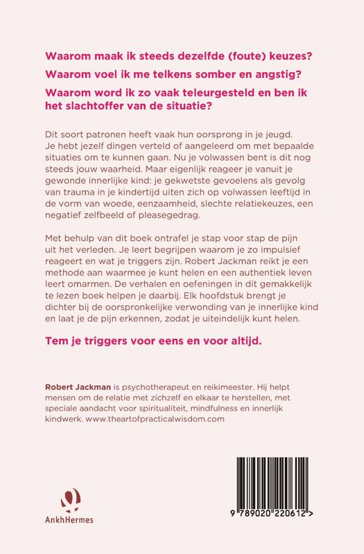'Waarom doe ik zo?' van Robert Jackman leert je om vanuit je authentieke volwassen zelf in de wereld te staan. Je ontdekt de bron van je triggers en temt ze voor eens en voor altijd. Waarom maak ik steeds dezelfde (foute) keuzes? Waarom voel ik me zo vaak somber en angstig? Waarom word ik zo vaak teleurgesteld en ben ik het slachtoffer van de situatie? Dit soort patronen heeft vaak hun oorsprong in je jeugd. Je hebt jezelf dingen verteld of aangeleerd om met bepaalde situaties om te kunnen gaan. Nu je volwassen bent is dit nog steeds jouw waarheid. Maar eigenlijk reageer je vanuit je gewonde innerlijke kind: je gekwetste gevoelens als gevolg van trauma in je kindertijd uiten zich op volwassen leeftijd in de vorm van bijvoorbeeld woede, eenzaamheid, slechte relatiekeuzes, een negatief zelfbeeld en pleasegedrag. In dit boek ontrafel je stap voor stap de pijn uit het verleden. Je leert begrijpen waarom je zo impulsief reageert en Robert Jackman reikt je een methode aan waarmee je kunt helen en een authentiek leven leert omarmen. De verhalen en oefeningen in dit gemakkelijk te lezen boek helpen je daarbij. Elk hoofdstuk brengt je dichter bij de oorspronkelijke verwonding van je innerlijke kind, laat je pijn erkennen zodat je uiteindelijk kunt helen. Tem je triggers voor eens en voor altijd.