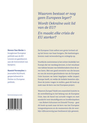 Waarom Europa? biedt een essentieel inzicht in de ontwikkeling en het belang van de Europese Unie. Aan de hand van actuele vragen en met aandacht voor sleutelfiguren en hoofdrolspelers - van Robert Schuman tot Donald Trump - gaat dit boek op zoek naar de kern van het Europese integratieproces en de momenten die de voorbije vijfenzeventig jaar beslissend zijn geweest.