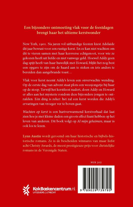 Wachten op kerst van Lynn Austin gaat verder waar Al mijn geheimen ophield. Adelaide Forsythe kan niet wachten om kerst te vieren met haar kersverse echtgenoot, met wie ze getrouwd is uit liefde en niet voor het geld. Maar de overgang van haar rijke bestaan naar het ingetogen leven van een huisvrouw gaat niet zonder slag of stoot. Hoewel ze haar huwelijk met Howard geen dag betreurt, lukt het haar slechts met moeite om de haard aan te steken en meer te bereiden dan aangebrande toast.