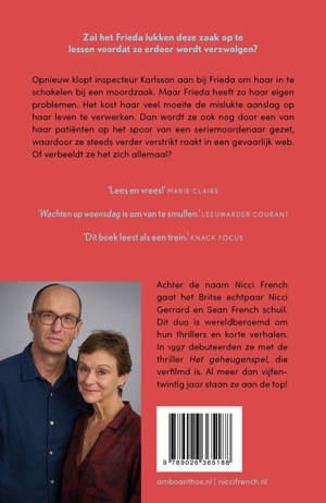 Maar Frieda heeft zo haar eigen problemen. Ze heeft veel moeite om de mislukte aanslag op haar leven te verwerken. En als ze dan ook nog door een van haar patiënten op het spoor van een seriemoordenaar wordt gezet, raakt Frieda steeds dieper verstrikt in een gevaarlijk web. Of is het slechts haar eigen verbeelding die met haar aan de haal gaat? Zal het Frieda lukken het duistere geheim op te lossen voordat ze er zelf door wordt verzwolgen?