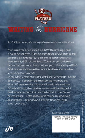 Pour sa rentrée à l’université, Faith Wolf emménage dans la coloc de son frère. Si les trois sportifs qui y vivent ne lui font pas peur, elle redoute tout de même la cohabitation avec le séduisant, drôle et talentueux Cameron, son fantasme depuis l’adolescence. Parce qu’à ses yeux, elle n’est que Bébé Wolf, la sœur de son meilleur ami, interdite et inaccessible à cause de leur bro code. Le bro code, Cameron Hunter, défenseur vedette de l’équipe de hockey, l’a pourtant déjà transgressé il y a trois ans. Alors si Cameron voit sa vie insouciante bouleversée par l’arrivée de Faith, il ne dit rien, car son meilleur ami ne lui pardonnera pas deux fois que l’on touche à l’une de ses petites sœurs… Cette année sur le campus réserve bien des surprises… reste à savoir lequel emportera l’autre dans son sillage.