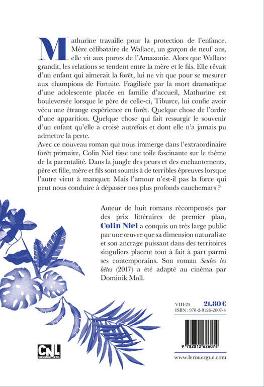 Mathurine travaille pour la protection de l'enfance. Mère célibataire de Wallace, un garçon de neuf ans, elle vit en Guyane, aux portes de l'Amazonie. Alors que Wallace grandit, les relations se tendent entre la mère et le fils. Elle rêvait d'un enfant qui aimerait la forêt, lui ne vit que pour se mesurer aux champions de Fortnite. Fragilisée par la mort dramatique d'une adolescente placée en famille d'accueil, Mathurine est bouleversée lorsque le père de celle-ci, Tiburce, lui confie avoir vécu une étrange expérience en forêt. Quelque chose de l'ordre d'une apparition. Quelque chose qui fait ressurgir le souvenir d'un enfant qu'elle a croisé autrefois et dont elle n'a jamais pu admettre la perte. Avec ce nouveau roman qui nous immerge dans l'extraordinaire forêt primaire de la France d'Outre-Mer, Colin Niel tisse une toile fascinante sur le thème de la parentalité. Dans la jungle des peurs et des enchantements, père et fille, mère et fils sont soumis à de terribles épreuves lorsque l'autre vient à manquer. Mais l'amour n'est-il pas la force qui peut nous conduire à dépasser nos plus profonds cauchemars ?