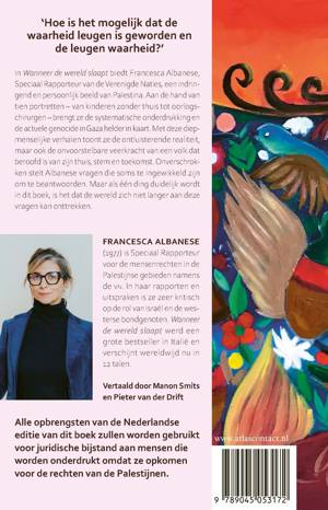 Hoe is het mogelijk dat de waarheid leugen is geworden en de leugen waarheid?’ In Wanneer de wereld slaapt biedt Francesca Albanese, speciaal VN-rapporteur, een indringend en persoonlijk beeld van Palestina. Aan de hand van tien portretten – van kinderen zonder thuis tot oorlogschirurgen – brengt ze de systematische onderdrukking en de actuele genocide in Gaza helder in kaart. Met deze diepmenselijke verhalen toont ze de ontluisterende realiteit, maar ook de onvoorstelbare veerkracht van een volk dat beroofd is van zijn thuis, stem en toekomst.