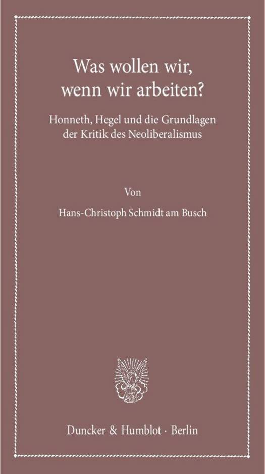 English summary: What Should Our Workplace Look Like? What should our workplace look like? Why does it often fail to live up to our expectations? According to Axel Honneth, members of modern Western societies wish to realize a kind of social freedom within the workplace that involves specific forms of cooperation and recognition. For Honneth, neoliberal capitalism is deficient because it cannot realize the institutional requirements that are necessary to bring this freedom about. This volume reconstructs the foundations of Honneth's critique of neoliberalism, diagnoses some of the issues with his account, and explains how these can be addressed through recourse to Hegel's social philosophy. German description: Wie sollte unsere Arbeitswelt beschaffen sein? Und warum hat sie die fragliche Beschaffenheit nicht? Diese Fragen, die seit dem Ausbruch der Weltwirtschaftskrise vor zehn Jahren verstarkt diskutiert werden, fallen traditionell in den Untersuchungsbereich der Kritischen Theorie in der Tradition der Frankfurter Schule. Glaubt man Axel Honneth, dem neben Jurgen Habermas bedeutendsten zeitgenossischen Vertreter dieser Schule, dann mochten wir, die Angehorigen moderner westlicher Gesellschaften, in der Arbeitswelt eine Art von sozialer Freiheit realisieren, die spezifische Formen der Kooperation und Anerkennung einschliesst. Der gegenwartige (neoliberale) Kapitalismus ist fur Honneth deshalb problematisch, weil er den institutionellen Erfordernissen dieser Freiheit nicht gerecht werden kann. Der vorliegende Band rekonstruiert die Grundlagen der Honneth'schen Neoliberalismuskritik, diagnostiziert einige Probleme, welche diese Theorie aufwirft, und erlautert, wie sich dieselben im Ruckgriff auf Hegels Sozialphilosophie beheben lassen.