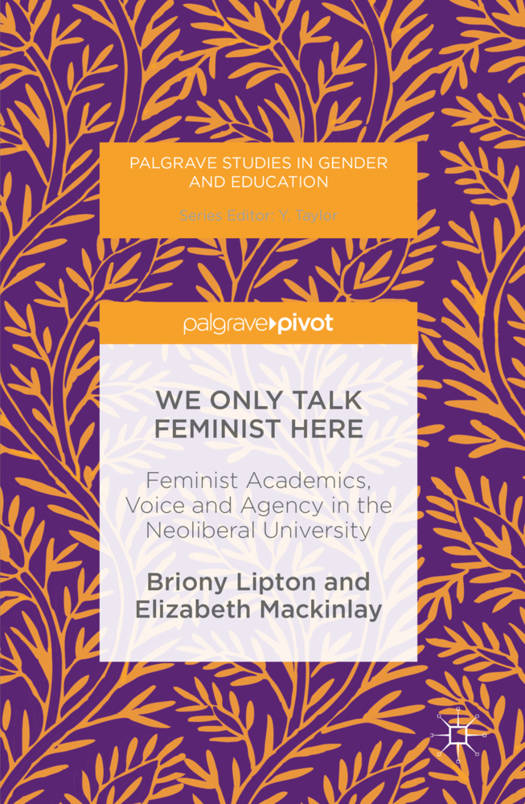 This book explores what it means to 'only talk feminist here' in the contemporary neoliberal university. How do feminist academics effect change? How are feminist voices sounded, heard, received, silenced, and masked? We Only Talk Feminist Here offers insight into the complexities, contradictions, and possibilities of 'talking feminist'; of writing as speaking, problematising notions of voice and agency, of speaking into the silences and the ways in which we fight for and flee to feminist spaces, and of talking back. This book presents new possibilities for framing 'talking feminist' differently, by exploring what we say, when we say it, how we say it, and what it means when we do any of these things in terms of our multiple and shifting feminist subjectivities. We Only Talk Feminist Here draws upon interviews and conversations with feminist academics in Australia to demonstrate the performative and discursive moves feminist academics make in order to be heard and effectchange to the gendered status quo in Australian higher education.