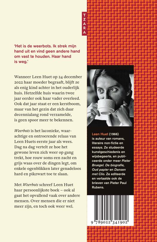 Met Weerbots schreef Leen Huet haar persoonlijkste boek – ook al gaat het opvallend vaak over andere mensen. Over mensen die er niet meer zijn, en toch ook weer wel.