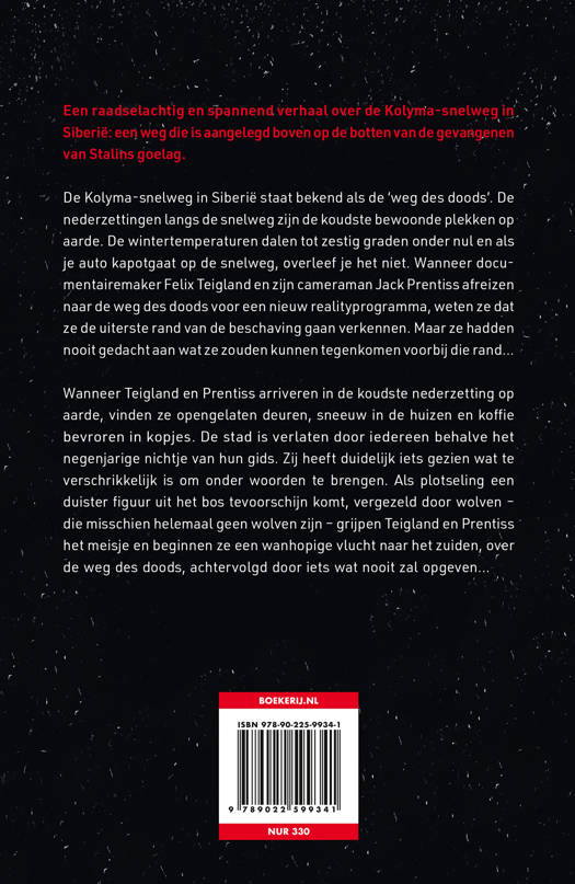 De Kolyma in Noord-Siberië staat bekend als de ‘weg des doods’. Het draagt de bittere herinnering met zich mee aan de honderdduizenden goelaggevangenen die stierven tijdens de bouw ervan, en wier overblijfselen onder de permafrost werden geploegd terwijl het werk doorging. De nederzettingen langs de snelweg zijn de koudste bewoonde plekken op aarde. De wintertemperaturen dalen tot zestig onder nul en als je auto kapotgaat op de snelweg, overleef je het niet. Wanneer de documentaireproducent Felix Teigland en zijn cameraman, Jack Prentiss, hun zinnen zetten op de weg des doods voor een nieuwe realityshow, weten ze dat ze de uiterste rand van de beschaving gaan verkennen, maar ze hadden nooit gedacht aan wat ze zouden kunnen tegenkomen voorbij die rand.