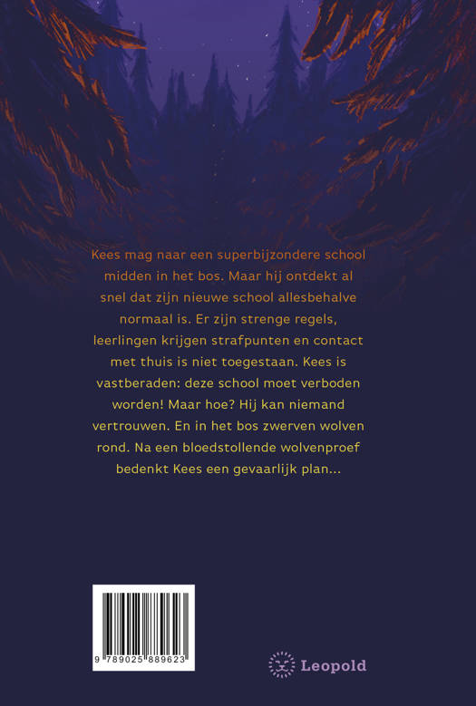 Weg met die school! van Zilveren Griffel-winnaar Marijn Backer is een spannend en fantasierijk kinderboek vol mysterie en avontuur. Kees en zijn vrienden mogen naar een superbijzondere school midden in het bos. Maar ze ontdekken al snel dat hun nieuwe school allesbehalve normaal is. Er zijn strenge regels en contact met thuis is verboden. Kees is vastberaden: deze school moet verboden worden! Maar hoe? Kees kan niemand vertrouwen. En in het bos zwerven wolven rond. Na een bloedstollende wolvenproef bedenkt Kees een gevaarlijk plan...
