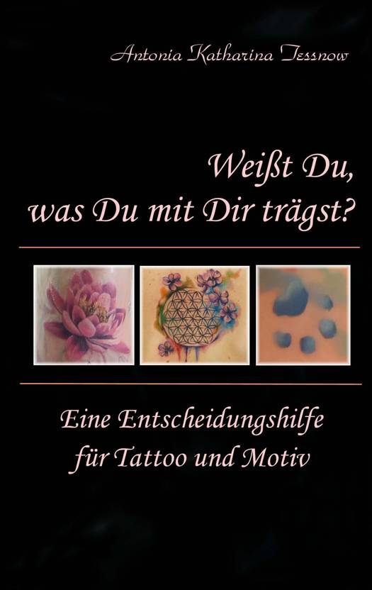 Was für Wirkungen auf Dich und welche Auswirkungen auf Dein Leben kann eine Tätowierung haben? Wie weitreichend können Veränderungen, wie tief Seelenschmerzen sein, die eine unbedachte Tätowierung möglicherweise mit sich bringt? Wie wichtig sind die Auswahl des Motivs und des Tätowierers? Antonia Katharina Tessnow ging durch die dunkle Erfahrung einer vorschnellen Entscheidung und obendrein eines schlecht gestochenen Tattoos. Fast zwei Jahre ihres Lebens kostete sie die Wiederherstellung ihres Armes, für den sie sich täglich schämte. Ihre Leidensgeschichte beschrieb sie in dem ersten Teil des Buches 'Tattoo - Laser - Cover Up - Wenn der Traum zum Albtraum wird'. Für alle, die hoffentlich nicht vor dem Lasern und Covern stehen, sondern vor der einmaligen Entscheidung zu einer neuen Tätowierung, veröffentlicht sie nun den erweiterten und überarbeiteten zweiten Teil und bietet damit allen Tattoo-Freudigen einen Ratgeber und eine Entscheidungshilfe. Frage Dich, was Du mit Dir tragen willst, bevor Du Dir mit einer falschen Entscheidung eine Bürde auflastest, die Du zu tragen nicht vermagst.
