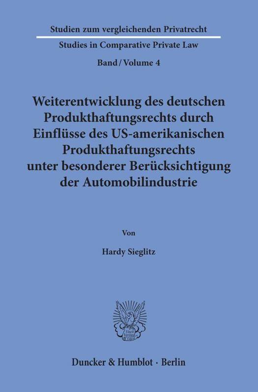 Weiterentwicklung Des Deutschen Produkthaftungsrechts Durch Einflusse Des Us-Amerikanischen Produkthaftungsrechts Unter Besonderer Berucksichtigung Der Automobilindustrie