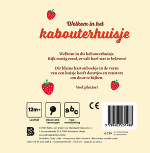 Welkom in ons huisje. Kijk rustig rond, er valt heel wat te beleven! Dit kleine kartonboekje in de vorm van een huisje heeft deurtjes en vensters om door te kijken. Ideaal voor verhaaltjestijd.