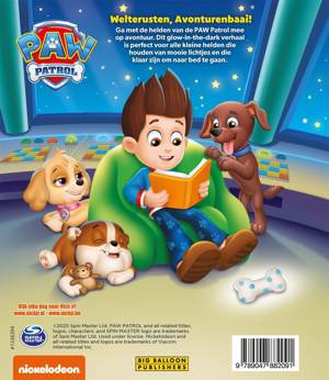 Het glow-in-the-dark PAW Patrol-kartonboek 'Welterusten, Avonturenbaai!' is het ideale voorleesboek voor het slapengaan voor elke PAW Patrol-fan. Het wordt donker in Avonturenbaai en de inwoners maken zich samen met het PAW Patrol-team klaar om naar bed te gaan. Tijd om onder de dekens te kruipen, sterren te kijken en verhalen te lezen. 'Welterusten, Avonturenbaai' bevat echte glow-in-the-dark-sterretjes! Dit is een leuk kinderboek om voor te lezen aan kinderen vanaf 4 jaar.