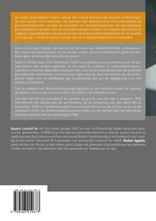 Welzijn op het werk voor ambtenaren is verkrijgbaar als boek, in een softcover. Bovendien maakt deze titel deel uit van de reeks Tewerkstellen Topics. Ontdek alle reeksboeken nu!