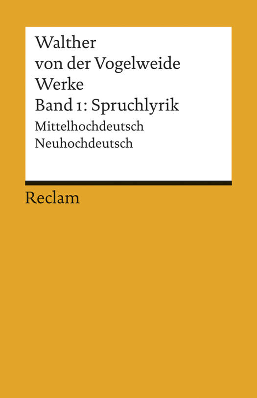 Der erste Band dieser Werkausgabe, die nicht länger auf Lachmanns Edition aufbaut, sondern die Texte wieder unmittelbar aus den Handschriften gewinnt, enthält die Spruchdichtung: jene über 120 Strophen, die - aus heutiger Sicht - Walthers eigenster Beitrag zur Lyrik des Mittelalters sind. In ihnen geht es um Weltbetrachtung, um Belehrung und Ermahnung, Lob und Schelte und um engagierte Stellungnahmen zur Reichspolitik, zur Politik der Fürsten und der Kirche.Die vielschichtigen und beziehungsreichen Texte werden in einem ausführlichen Kommentar erläutert.Sprachen: Deutsch, Mittelhochdeutsch (ca. 1050-1500)