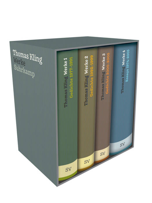 Die vierbändige Ausgabe der Werke vereint auf rund 2000 Seiten den Textbestand sämtlicher Bücher und bibliophiler Editionen, die der 2005 mit 47 Jahren verstorbene große deutsche Dichter publiziert hat, dazu zahlreiche weitgehend unbekannte Gedichte und Essays seit 1977 sowie eine Auswahl bislang unveröffentlichter, aus dem Thomas Kling Archiv geborgener Arbeiten.