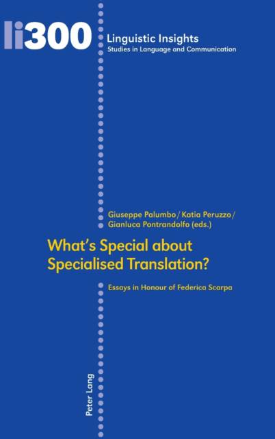 This volume honours Federica Scarpa, a prominent figure in Translation Studies who has made a major contribution to defining, describing and researching specialised translation. In her body of research, Scarpa has successfully combined insights from a variety of approaches, from functional theories to the cultural turn and, more recently, profession-related aspects. Her approach to the study of specialised translation considers multiple dimensions (discoursal, pragmatic and service-related) and builds an organic model capable of accommodating context-based quality criteria and advances in technology. The chapters collected in the volume develop some of Scarpa's ideas and have been authored by scholars and professionals who have established a direct dialogue with Scarpa or benefited from her insights.